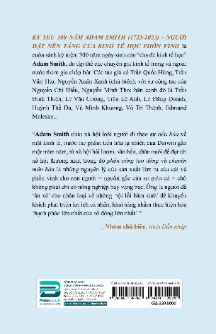 Kỷ yếu 300 năm Adam Smith (1723-2023) - Người đặt nền tảng của kinh tế học phồn vinh là cuốn sách được ra đời để kỷ niệm 300 năm ngày sinh của “cha đẻ” kinh tế học hiện đại Adam Smith (1723-2023), do Phanbook và NXB Đà Nẵng ấn hành. Đây là quyển sách đầu tiên về diện mạo và những đóng góp của ông cho lý thuyết kinh tế thế giới, do Trần Quốc Hùng - Trần Văn Thọ - Nguyễn Xuân Xanh chủ biên, với sự cộng tác, tham gia chấp bút của Nguyễn Chí Hiếu - Nguyễn Minh Thọ - Trần Lê Anh - Nguyễn Ngọc Anh - Nguyễn Tú Anh - Lê Văn Cường - Lê Đăng Doanh - Huỳnh Thế Du - Edmund Malesky - Emily Hamblin - Vũ Minh Khương - Hoàng Hải Vân…