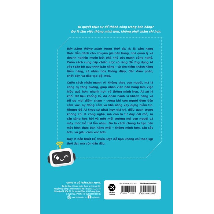 Cuốn sách Bán hàng thông minh trong thời đại AI là cẩm nang hiện đại giúp các chuyên gia bán hàng, nhà lãnh đạo và doanh nghiệp hiểu và ứng dụng trí tuệ nhân tạo (AI) để bứt phá trong lĩnh vực bán hàng. Tác phẩm không chỉ trình bày lý thuyết mà còn mang tính thực tiễn cao, với các chiến lược cụ thể để tích hợp AI vào toàn bộ quy trình bán hàng - từ tìm kiếm khách hàng tiềm năng, cá nhân hóa thông điệp, đàm phán đến chốt đơn và đào tạo đội ngũ.