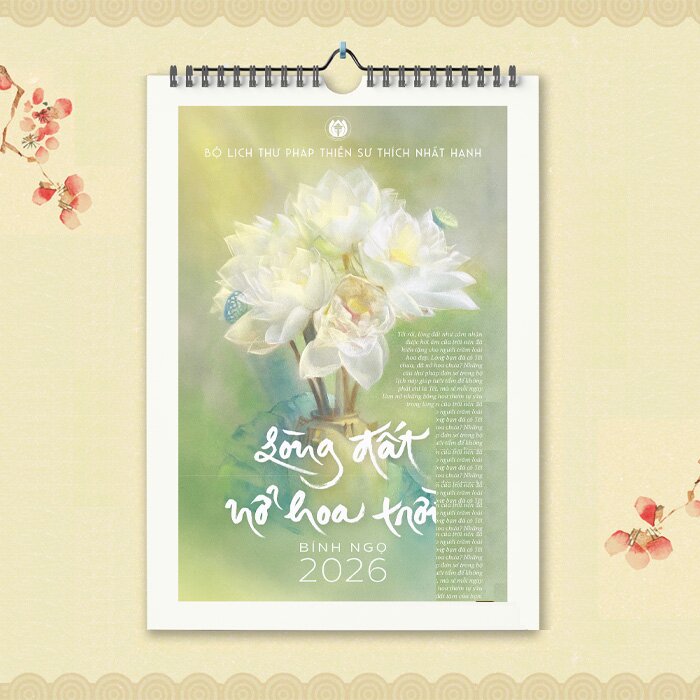 Lịch gồm 12 thông điệp thư pháp nhẹ nhàng, sâu sắc từ Thiền sư Thích Nhất Hạnh như: Thở đi con, thở thật sâu thật chậm, không sao đâu; Lắng nghe; Con về nương tựa đất Mẹ; Lòng hôm ấy sẽ là lòng muôn thuở; Đây là một giây phút hạnh phúc…kết hợp cùng tranh hoa sen của hoạ sĩ Trịnh Lữ - biểu tượng của giác ngộ và thanh tịnh, nở lên từ lòng đất, như nhắc ta: hạnh phúc và hiểu biết có thể bắt đầu từ chính nơi ta đang đứng.