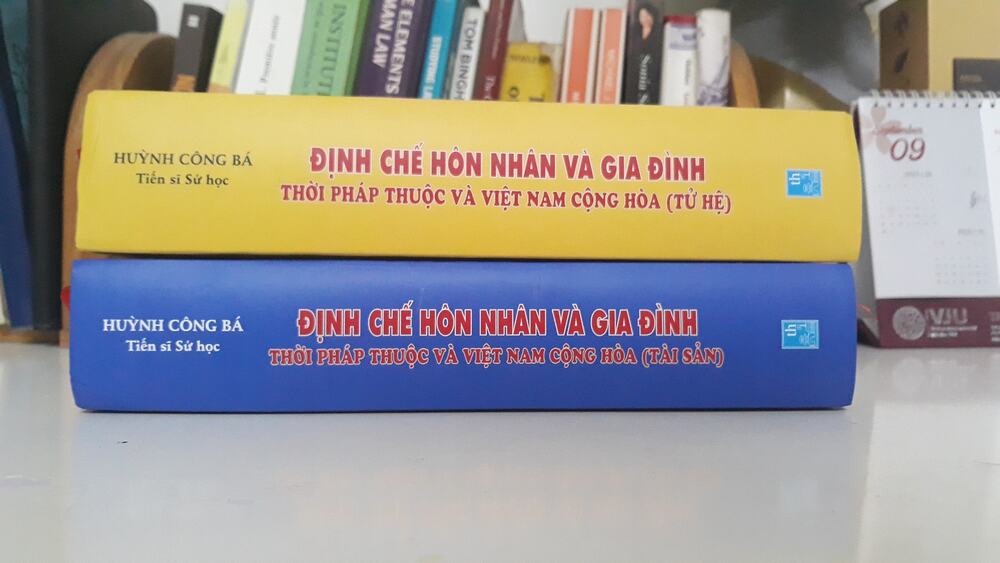 Định chế hôn nhân và gia đình thời Pháp thuộc và Việt Nam Cộng Hòa của TS Huỳnh Công Bá. Tập 2 về Tử hệ và Tập 3 về Tài sản. Mỗi quyển dày hơn 1000 trang. Sau khi xem nhanh Lời nói đầu; Mục lục, và Danh mục tài liệu tham khảo thì chỉ có thể nói một câu: Khủng khiếp. Tác phẩm này sẽ làm cho tất cả các công trình công bố trước đây về cùng chủ đề trở nên không cần thiết, và đặt ra một cái trần rất khó vượt qua cho các tác phẩm sau này. Lịch sử! Chắc TS Bá phải dành cả đời để viết công trình này. Kính cẩn nghiêng mình trước nỗ lực và thành quả của TS Huỳnh Công Bá. Vào Huế, kiểu gì cũng sẽ tìm đến xin được yết kiến TS Bá.