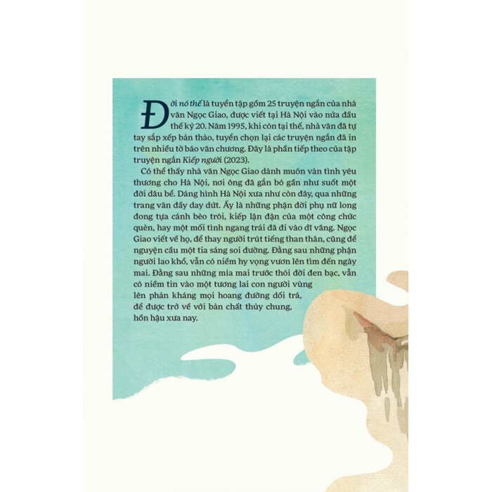 Có thể thấy nhà văn Ngọc Giao dành muôn vàn tình yêu thương cho Hà Nội, nơi ông đã gắn bó gần như suốt một đời dâu bể. Dáng hình Hà Nội xưa như còn đây, qua những trang văn đầy day dứt. Ấy là những phận đời phụ nữ long đong tựa cánh bèo trôi, kiếp lận đận của một công chức quèn, hay một mối tình ngang trái đã đi vào dĩ vãng. Ngọc Giao viết về họ, để thay người trút tiếng than thân, cũng để nguyện cầu một tia sáng soi đường. Đằng sau những phận người lao khổ, vẫn có niềm hy vọng vươn lên tìm đến ngày mai. Đằng sau những mỉa mai trước thói đời đen bạc, vẫn có niềm tin vào một tương lai con người vùng lên phản kháng mọi hoang đường dối trá, để được trở về với bản chất thủy chung, hồn hậu xưa nay.