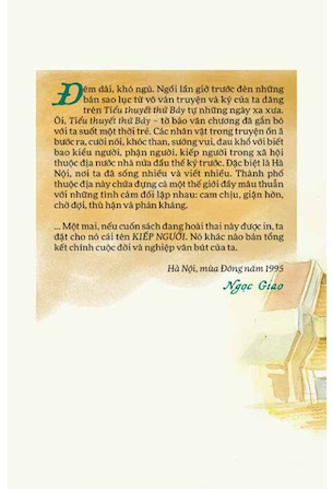 Các truyện ngắn trong tập này được nhà văn Ngọc Giao viết trong nửa đầu thế kỷ 20, từng đăng trên Tiểu Thuyết Thứ Bảy, nơi ông gắn bó suốt một thời tuổi trẻ (vơi tư cách là thư ký tòa soạn). Năm 1995, khi còn tại thế, chính tác giả đã sắp xếp các truyện ngắn lại thành bản thảo với tựa là Kiếp Người. Trong lời tự sự của mình, nhà văn viết: "Các nhân vật trong truyện ồn ã bước ra, cười nói, khóc than, sướng vui, đau khổ với biết bao kiểu người, phận người, kiếp người trong xã hội thuộc địa nước nhà nửa đầu thế kỷ trước. Đặc biệt là Hà Nội, nơi ta đã sống nhiều và viết nhiều. Thành phố thuộc địa này chứa đựng cả một thế giới đầy mâu thuẫn với những tình cảm đối lập nhau: Cam chịu, giận hờn, chờ đợi, thù hận và phản kháng."