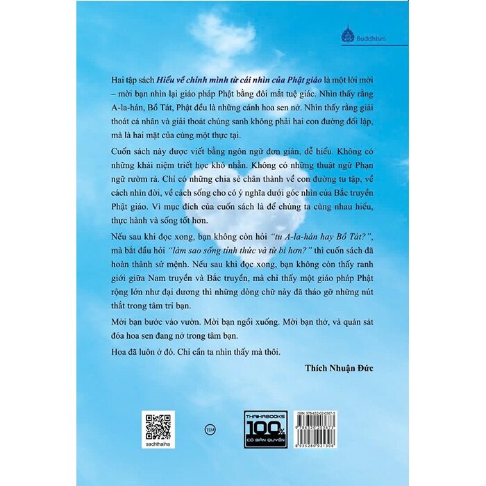 Cuốn sách "Hiểu về chính mình từ cái nhìn của Phật giáo" - Tập 1" của Thầy Thích Nhuận Đức không phải là một tập hợp những giáo lý cao siêu, xa rời thực tế. Đây đơn giản là một lời mời - mời bạn cùng ngồi xuống, nhìn lại bản thân bằng đôi mắt tuệ giác và lòng bao dung.