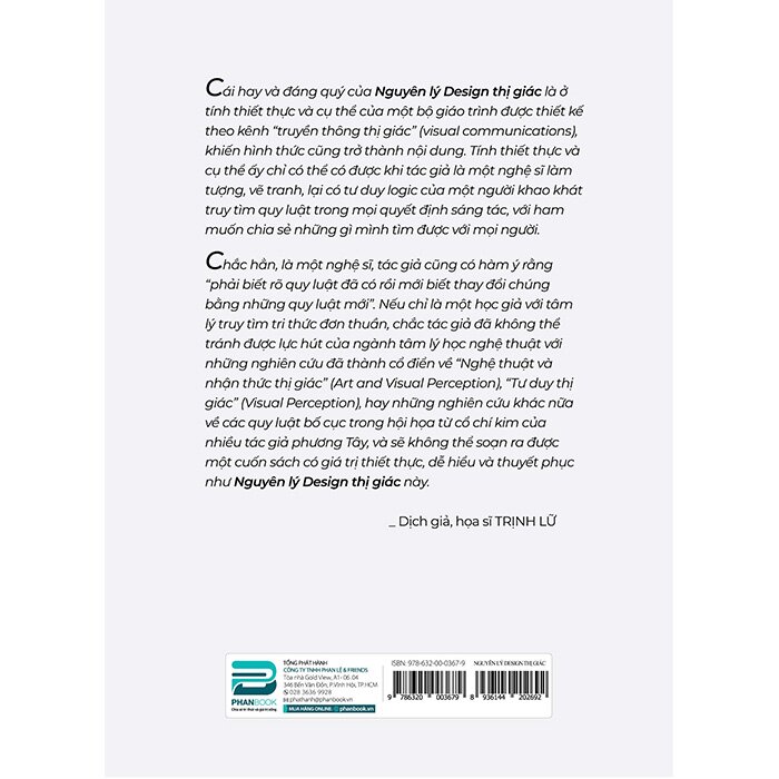 Kể từ khi con người biết làm ra công cụ thì design đã là vật chứng của văn minh nhân loại. Lịch sử design là lịch sử văn minh con người, đồng thời là văn hóa thị giác. Design có mối quan hệ song sinh, liên tục, không gián đoạn với mọi loại hình nghệ thuật thị giác thực và ảo. Trên cơ sở đó, Nguyên lý Design thị giác đề cập tới mối quan hệ giữa thị giác với ánh sáng, hình thể, màu sắc... là bước đầu nền tảng chuẩn bị cho sáng tạo của các nhà design tương lai, cho thao tác tìm kiếm những khác biệt của nhận thức cái đẹp. Đây không những là một giáo trình xuất sắc mà còn là cẩm nang cần thiết cho người làm thiết kế mỹ thuật, họa sĩ, nhà thẩm định và phê bình trong lĩnh vực nghệ thuật thị giác nói chung - cả tự học lẫn sinh viên, chuyên và không chuyên.