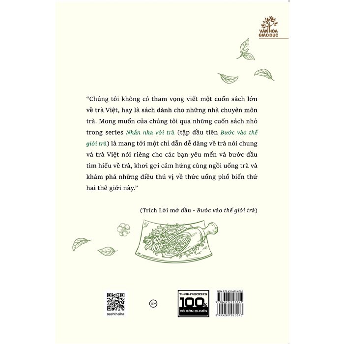 Cuốn sách là bước khởi đầu hoàn hảo, giúp khơi gợi tình yêu và lòng trân quý dành cho cây trà Việt, mời gọi mỗi chúng ta hãy dừng lại và tìm thấy sự bình yên trong từng chén trà.