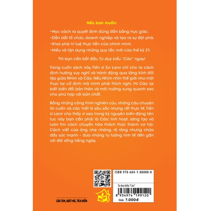 Bằng những công trình nghiên cứu, những câu chuyện lôi cuốn và các triết lý sâu sắc nhưng rất thực tế, Tiến sĩ Lanir cho thấy vì sao trong kỷ nguyên biến động liên tục này bạn cần phải là Cáo: linh hoạt, sáng tạo và luôn tìm cách chuyển hóa thách thức thành cơ hội. Cách viết của ông nhẹ nhàng, rõ ràng nhưng chứa đầy sức mạnh - đưa những tư tưởng tinh tế đến gần với đời sống hằng ngày.