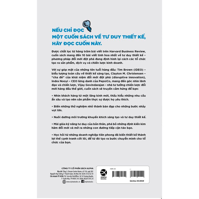 Cuốn sách Tư duy thiết kế trong kinh doanh, tuyển chọn từ 10 bài viết xuất sắc nhất của Harvard Business Review, mang đến cho bạn một hệ tư tưởng thực tiễn để đổi mới sáng tạo, phát triển sản phẩm/dịch vụ, cải tiến tổ chức và tạo ra giá trị khác biệt cho người dùng.
