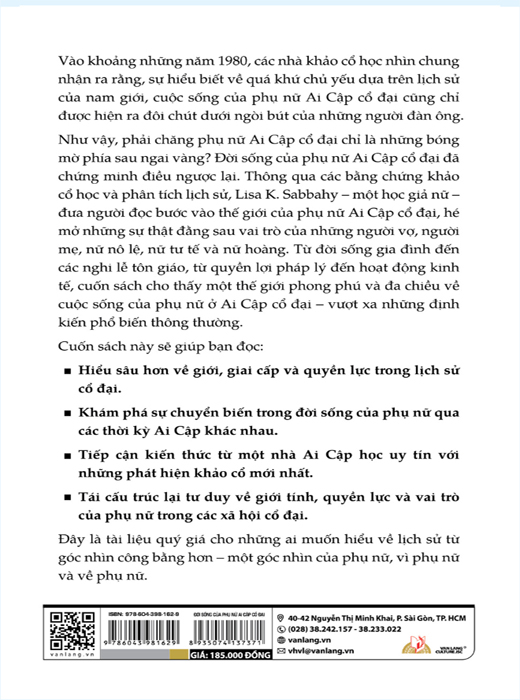 Từ đời sống gia đình, tôn giáo, quyền lợi pháp lý đến hoạt động kinh tế, cuốn sách phác họa một bức tranh đa chiều về vị thế thật sự của phụ nữ Ai Cập cổ đại – vượt xa những định kiến vốn có.