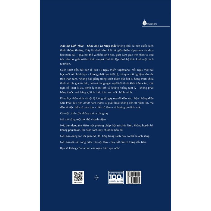 Khi cầm cuốn sách này trên tay, có lẽ bạn đang mang trong lòng một câu hỏi lớn, một nỗi khát khao mà lý trí không thể giải đáp còn lời nói dường như không đủ sức chạm tới. Có thể bạn đang đối mặt với nỗi đau thể chất - những cơn đau nhức dai dẳng, những bệnh tật kéo dài mà y học chưa tìm ra cách chữa khỏi hoàn toàn. Hoặc có lẽ đó là nỗi đau tinh thần - sự bất an, trầm cảm hay cảm giác lạc lõng giữa dòng đời hối hả. Có khi, bạn chỉ đơn giản là tìm kiếm một khoảnh khắc yên bình, một khoảng lặng để thở giữa những ồn ào của cuộc sống hiện đại. Dù lý do là gì thì cuốn sách này không phải là một lời hứa suông, không phải là một giáo điều khô khan mà là một hành trình - hành trình của chính bạn, được dẫn dắt bởi những trải nghiệm thực tế và khoa học mà tác giả đã khám phá và chứng ngộ qua nhiều năm tháng. Cuốn sách “Não Bộ Tỉnh Thức - Khoa học và Phép màu” không phải là một cuốn sách thiền thông thường. Đây là hành trình kết nối giữa thiền Vipassana và khoa học hiện đại - giữa hơi thở và thần kinh học, giữa cảm giác trên thân và cấu trúc não bộ, giữa sự tỉnh thức và quá trình tái lập trình hệ thần kinh một cách tự nhiên.