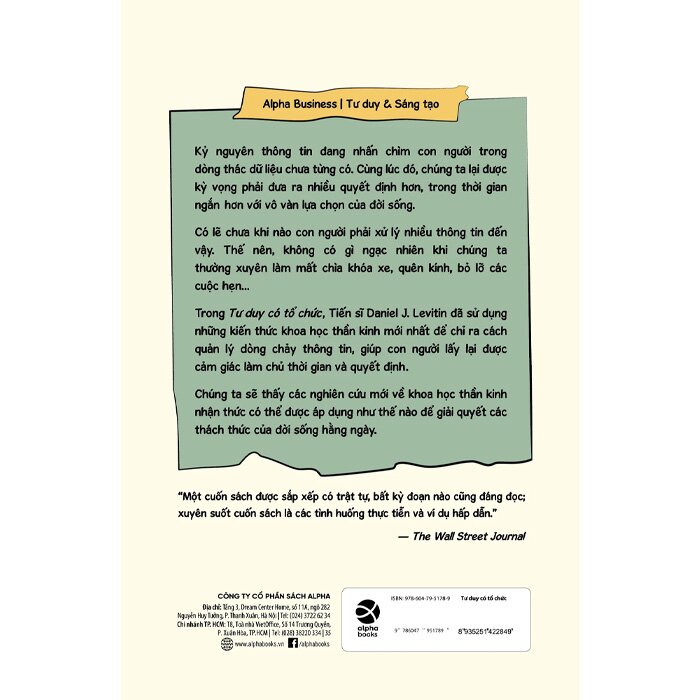 Tiến sĩ Daniel J. Levitin đã sử dụng những kiến thức khoa học thần kinh mới nhất để chỉ ra cách quản lý dòng chảy thông tin, giúp con người lấy lại được cảm giác làm chủ thời gian và quyết định của mình.