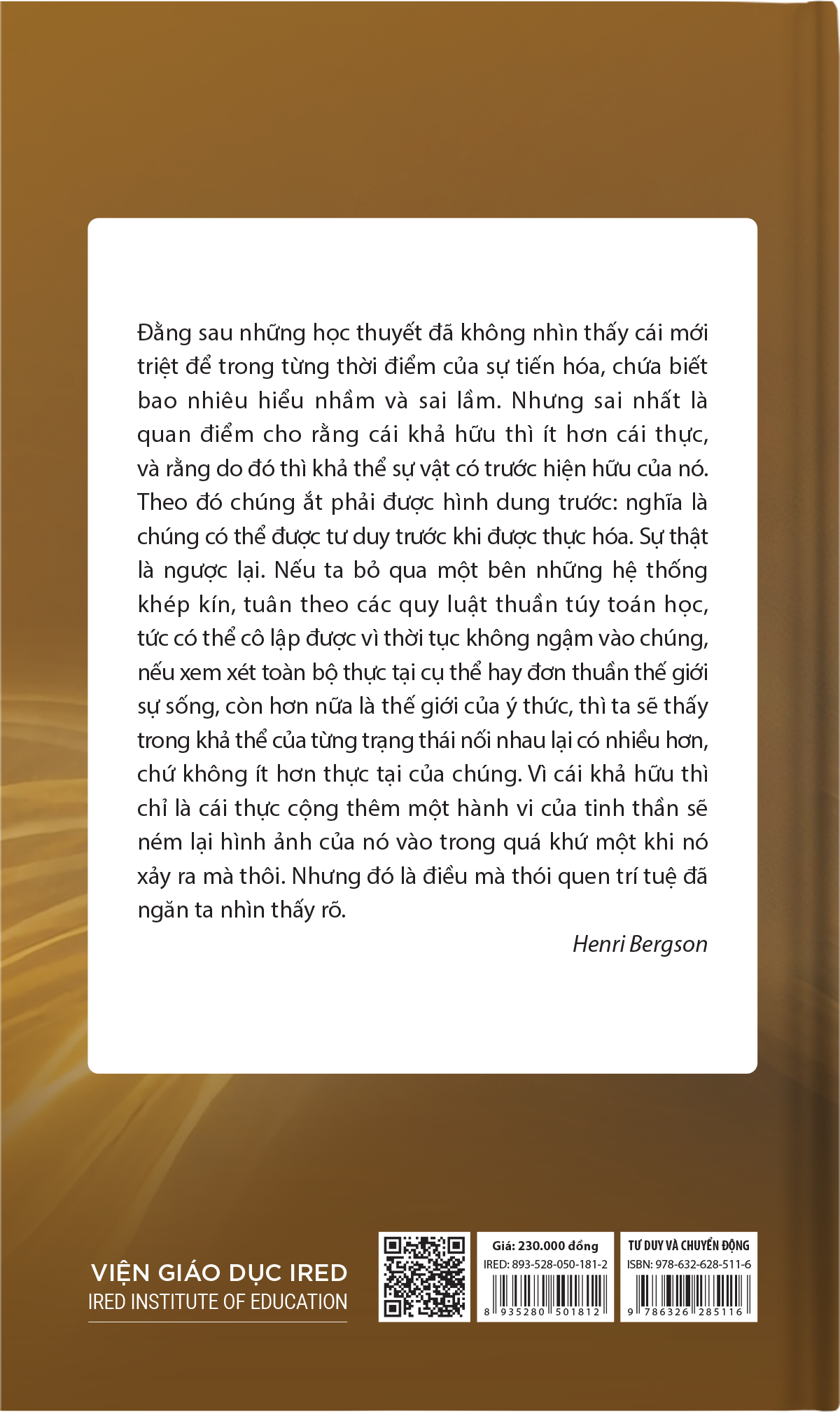 Xuất bản năm 1934, Tư Duy và Chuyển Động là tuyển tập các bài thuyết giảng tiêu biểu của Henri Bergson – triết gia Pháp có ảnh hưởng sâu rộng đến tư tưởng thế kỷ XX. Ông từng được trao Nobel Prize in Literature nhờ những đóng góp xuất sắc, đặc biệt qua tác phẩm Tiến Hóa Sáng Tạo.